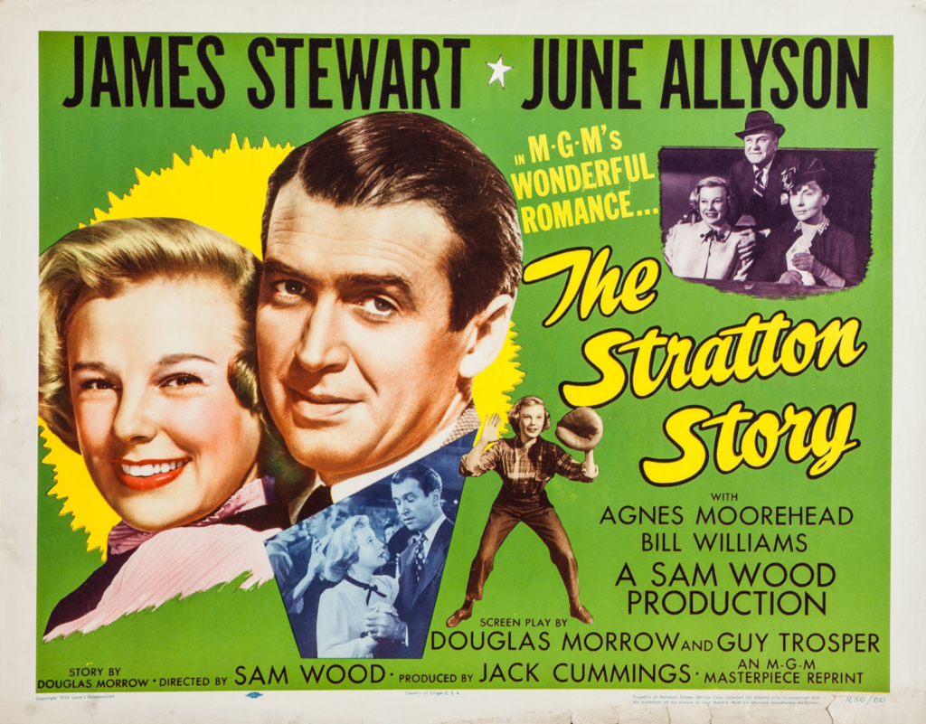 Reception: The Stratton Story premiered on April 21, 1949 in Cleveland, Ohio (to honor the Cleveland Indians’ opening home game that season), followed by a more conventional premiere in New York City on May 12. The film went into wide release in June. The Stratton Story was one of the top ten highest grossing films of 1949 and it earned a profit for MGM. Jimmy Stewart and June Allyson reprised their film roles in a February 13, 1950 radio adaptation of The Stratton Story for CBS Lux Radio Theatre. Stewart and Allyson were later paired together in The Glenn Miller Story (1954) and Strategic Air Command (1955).