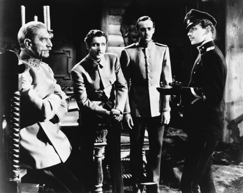 Plot Summary: While visiting the Kingdom of Ruritania, Englishman Rudolf Rassendyll (Ronald Colman) meets his distant relative, the soon-to-be King Rudolph V (Ronald Colman). The day before his coronation, Rudolph is drugged by his jealous half-brother Duke Michael (Raymond Massey). Rudolph’s allies Colonel Zapt (C. Aubrey Smith) and Captain Fritz von Tarlenheim (David Niven) convince Rassendyll to impersonate the King for the coronation to keep Michael from taking power. The coronation goes as planned, but Rassendyll is forced to continue impersonating the King after the unconscious Rudolph is kidnapped by Michael’s deceitful ally Rupert of Hentzau (Douglas Fairbanks Jr.). While Rassendyll, Zapt, and von Tarlenheim search for the King, Rassendyll finds himself falling in love with Princess Flavia (Madeleine Carroll), the woman who is engaged to the real Rudolph.